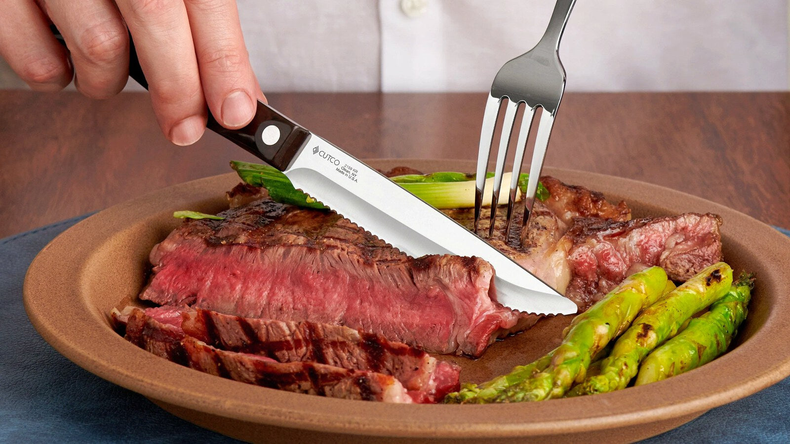 Double-D® edge provides a clean, smooth cut and stays sharp. Ergonomic handle provides a universal fit for large or small, left or right hands and locks the thumb and forefinger into place for safety and control. Full-tang provides strength and balance.