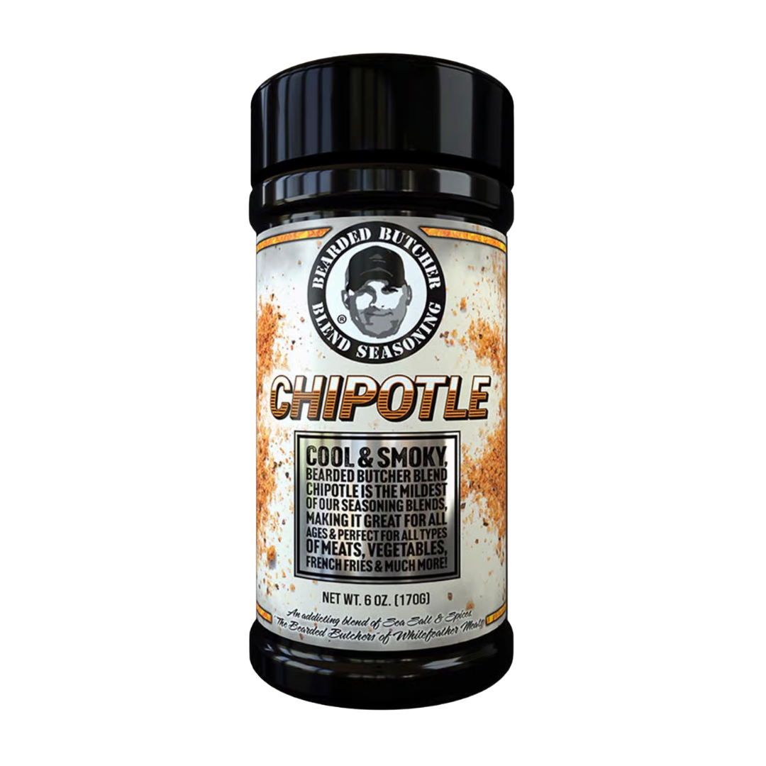 Cool & Smoky, The Bearded Butcher's Chipotle Blend is made with smoked chipotle peppers creating a mild bite and powerful impact, making this seasoning perfect for adding a Southwestern or Mexican twist to any dish. Our favorites are chicken wings or grilled quesadillas!