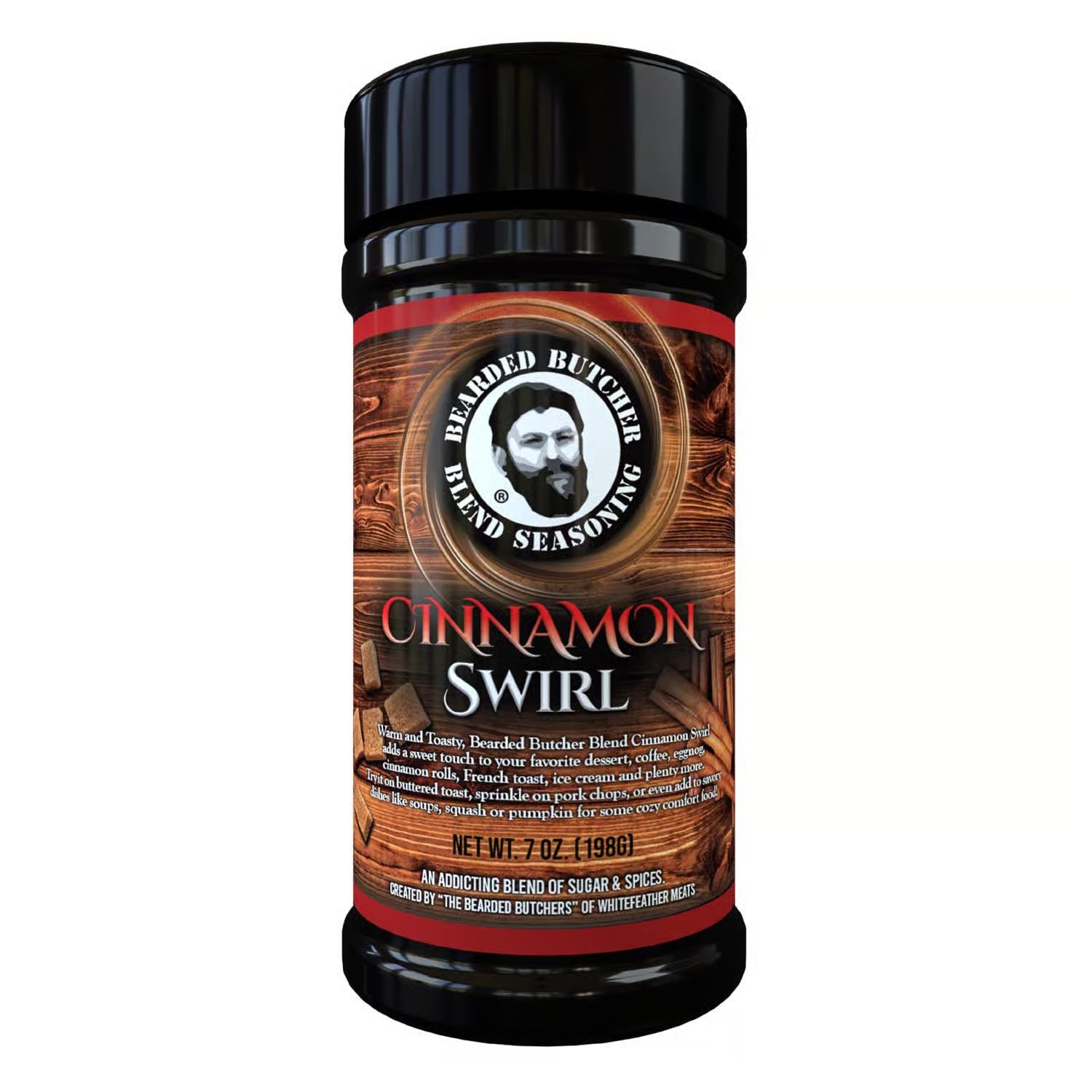 Warm & Toasty, The Bearded Butcher's Cinnamon Swirl Blend is the perfect seasoning for adding a sweet touch to your favorite desserts, coffee, eggnog, cinnamon rolls, French toast, ice cream, and more. Try it on buttered toast, sprinkle on pork chops, or add to savory dishes like soups, squash or pumpkin for some cozy comfort food! We set it beside our toaster and it goes on everything that comes from it.