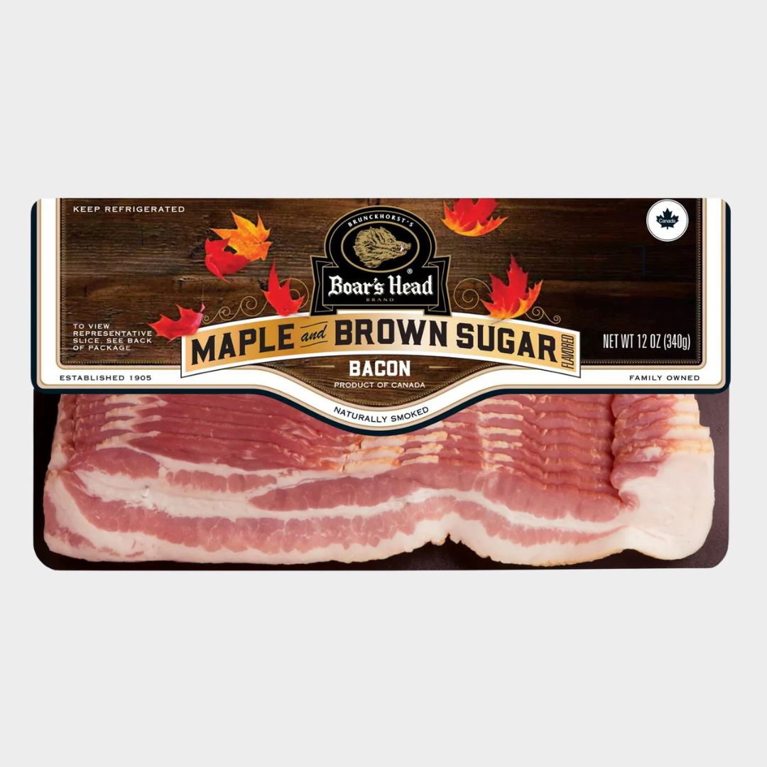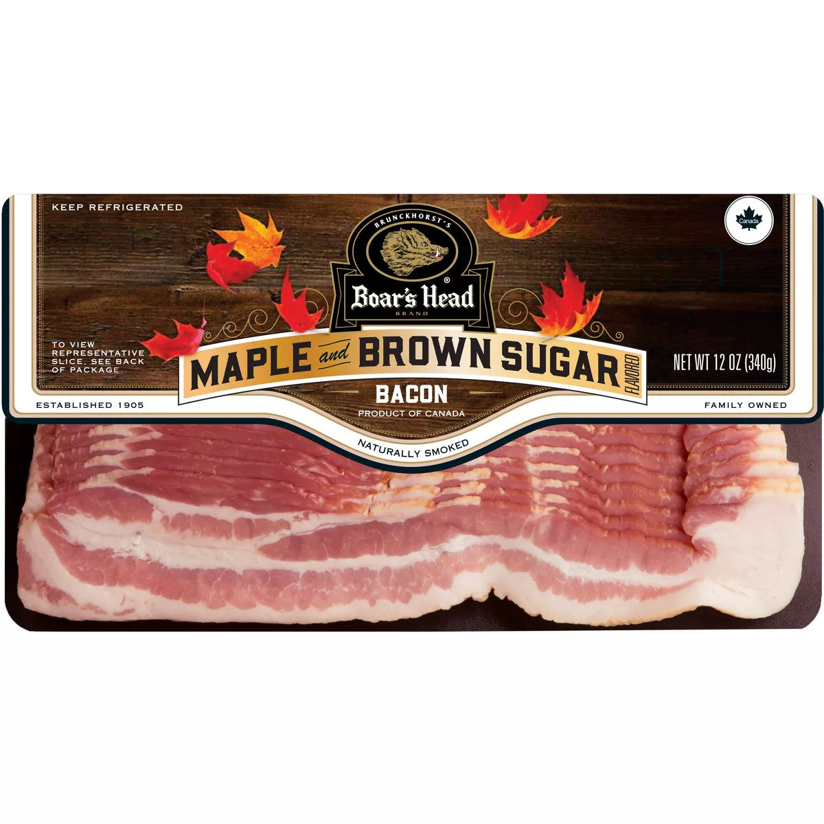 Made with real maple syrup and brown sugar, this bacon is naturally smoked for farm-fresh flavor. Boar's Head Maple & Brown Sugar Bacon has sweet and smoky notes in each delicious slice. This bacon is a product of Canada.