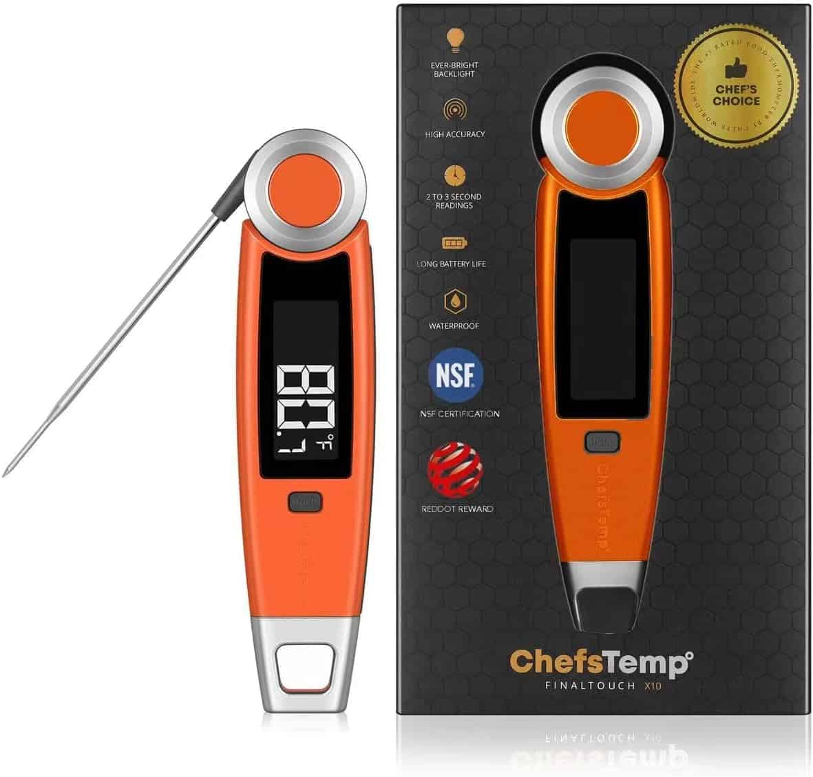 ChefsTemp Finaltouch X10 Top-Rated Professional Instant Read Meat Thermometer Tangerine Tart
