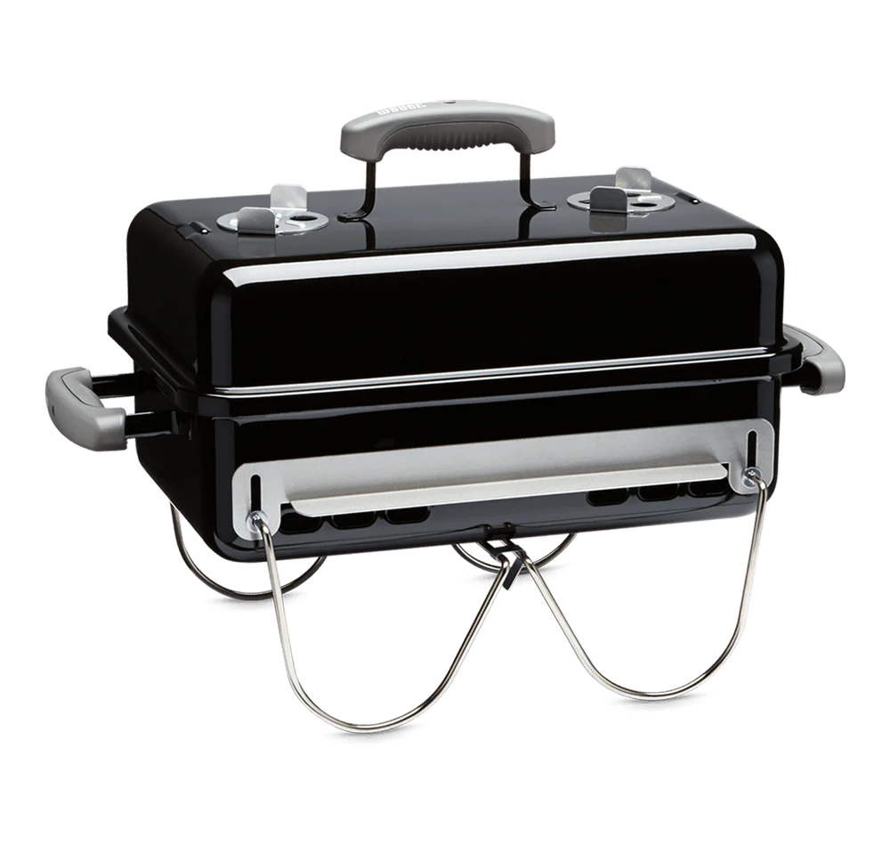 Get adventurous with your cooking with the easy-to-carry, easy-to-store Weber® Go-Anywhere® Charcoal Grill. Its clever design fits cooking tools, compact chimney starter and drip trays conveniently and securely inside making it easier to bring great charcoal-grilled flavor to campsites, tailgates and outdoor events. Grill at high heat directly over the coals or adjust the Char-Rail insert and coals for indirect cooking of ribs, whole chicken or a small roast.