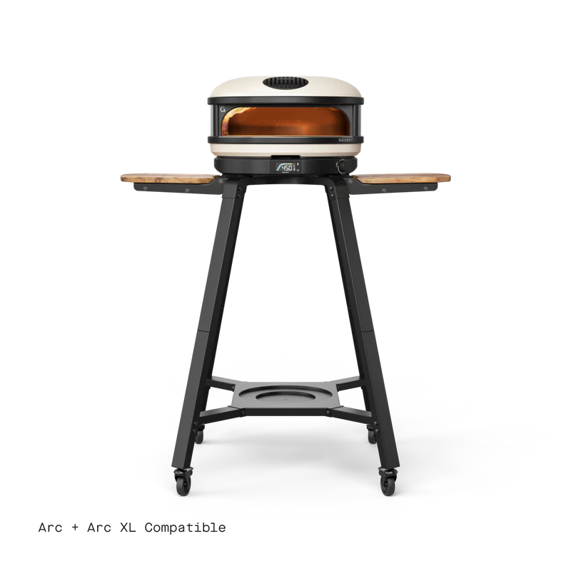 Designed with cooking on Arc or Arc XL in mind, your oven securely connects to the stand with an easy turn fastener and sits at the perfect height for cooking. The durable wooden wings and hanging hooks are built in for convenience while the four large wheels make it easy to move your oven around your outdoor space.