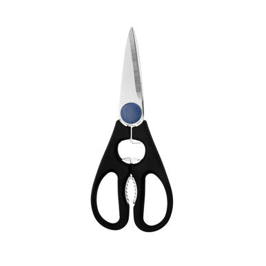 These kitchen shears feature sturdy, 3-inch, fine-edged steel blades. They are ready to tackle all of your everyday cutting tasks in the kitchen. The integrated bottle opening tools on the handle and blades make this a multi-purpose tool.