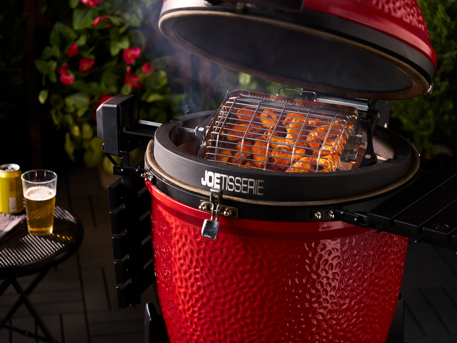 Revolutionize your charcoal grilling experience and transform your Kamado Joe into a rotisserie-style grill with the JoeTisserie attachment. Constructed from durable, 304-grade stainless steel, the spit rods and forks allow for steady rotation of up to 50-pounds of beef, pork or chicken resulting in meats that are smoky, juicy, and tender. The quiet, yet powerful, 120V motor provides a steady circulation for flawless food. Serve Up Adventure with the JoeTisserie accessory attachment.