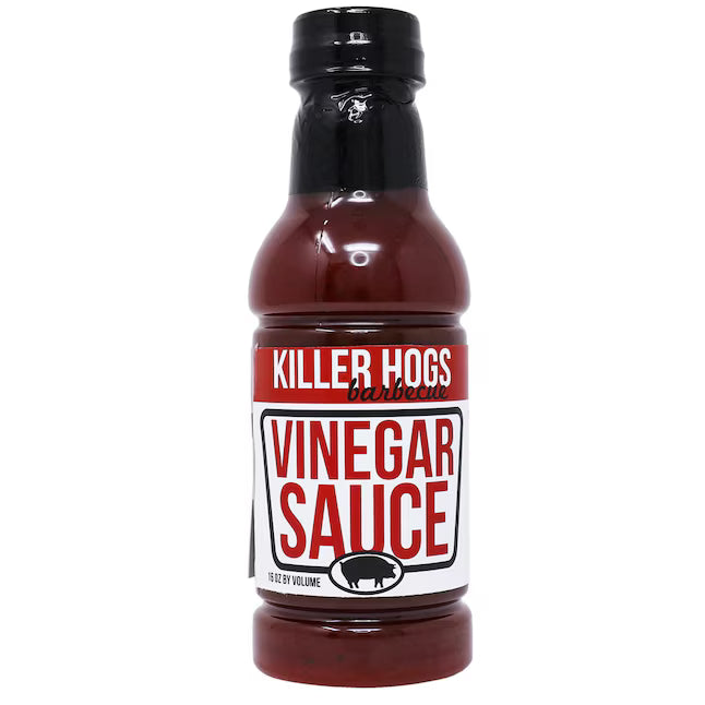 When an ordinary sauce just won’t cut it, Killer Hogs Vinegar sauce will deliver that world championship level of flavor your BBQ deserves. This vinegar-based sauce offers sweet and tangy flavors with a kick of heat at the end. Inspired by roots in West Tennessee barbecue, this barbecue sauce is a classic blend of vinegar and tomato. This sauce has a thin consistency making it great as a basting sauce or a mixing sauce. Use this barbeque sauce in pork ribs, brisket, chicken and more.