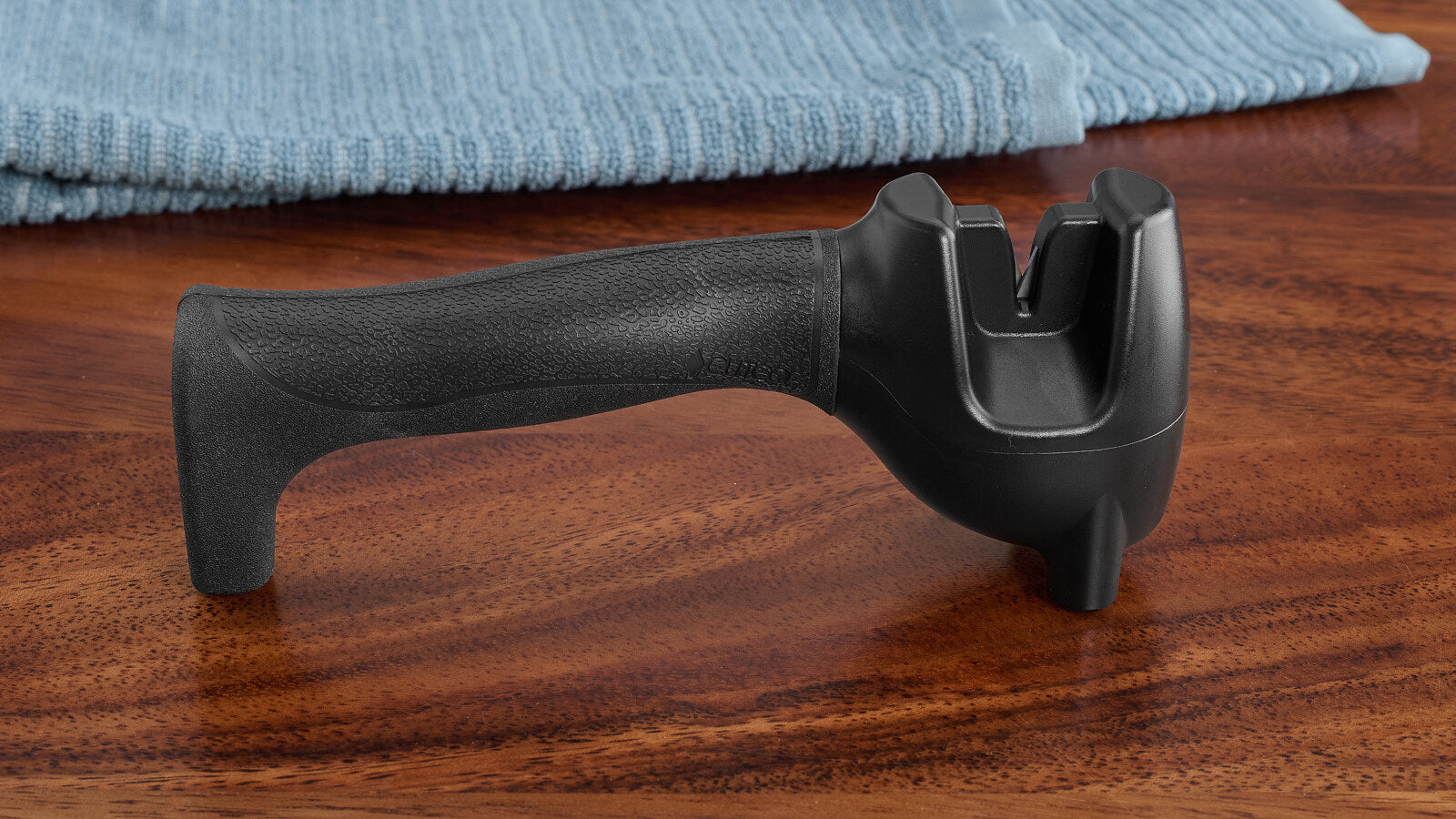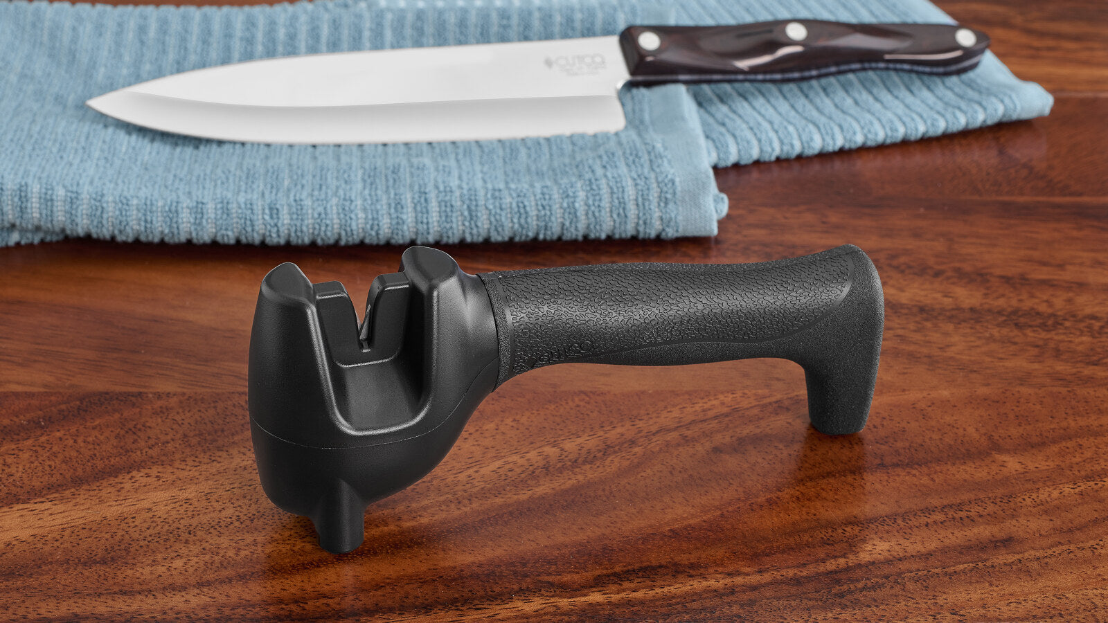 Allows you to cut a fresh edge on your straight-edge Cutco Knives with each use. Soft-grip handle that’s comfortable to hold. Non-slip feet securely hold sharpener in place during use.