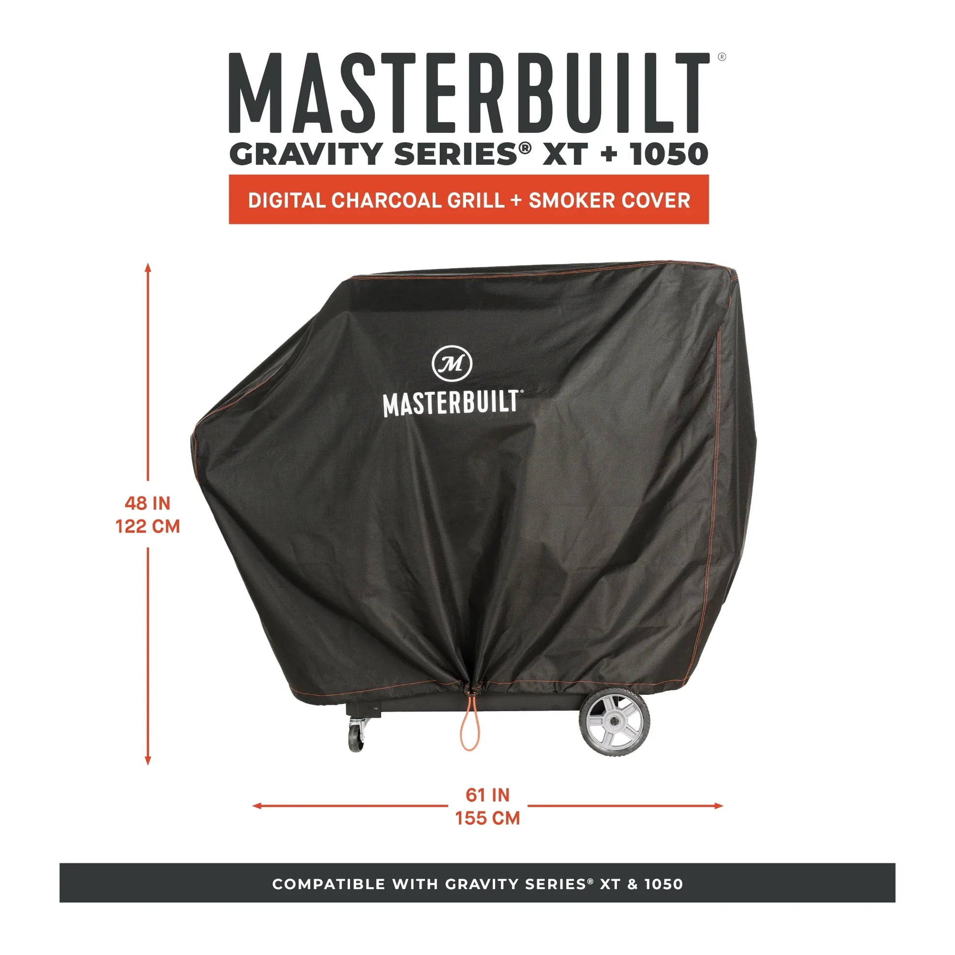 Protect your investment in your Masterbuilt® grill from the sun, rain, sleet and snow year round with the Gravity Series XT, 1150, and 1050 Digital Charcoal Grill and Smoker cover. This cover is made with water-resistant material that includes UV additives to extend the life and appearance of your cover. The inside features an added PVC liner that prevents tearing and double stitched seams to prevent leaking. The adjustable draw string assists in keeping the cover in place when installed. Use this cover with Masterbuilt’s Gravity Series XT, Gravity Series 1150, and Gravity Series 1050 Digital Charcoal Grill and Smokers.