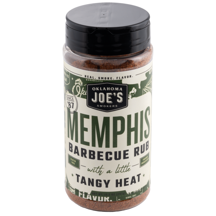 Give your smoked and grilled food a little tangy heat with Oklahoma Joe’s® Memphis Barbecue Rub. It’s a pitmaster-quality blend with paprika and onion for a taste of Memphis-style barbecue that doesn’t need any sauce. Add a burst of flavor to your wings, ribs and brisket with an all over rub down. Enhance the flavors of side dishes & soups and give your grilled veggies a flavorful barbecue char.
