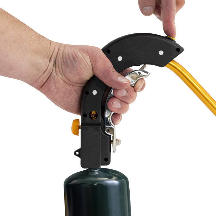 Get the fastest, easiest way to ignite wood and charcoal fires with the Oklahoma Joe's® Firelighter. Set your fuel ablaze 4-times faster using this powerful propane lighter with a wide flame and a 20,000 BTU burner. Simply grip the ergonomic handle, hold down the safety trigger and push the ignition button.