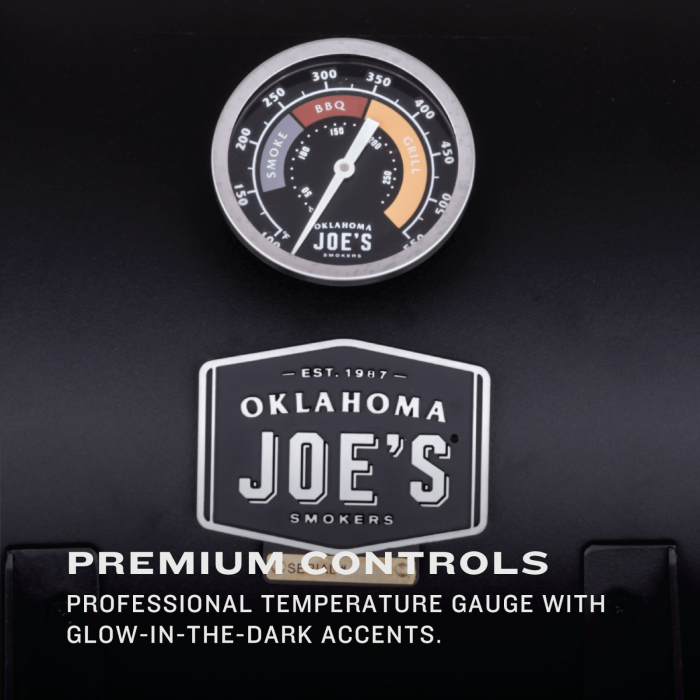 • CONTROLS: Professional temperature gauge with glow-in-the-dark accents