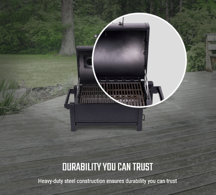 • MOBILITY: Sturdy side handles make transporting this portable grill easy