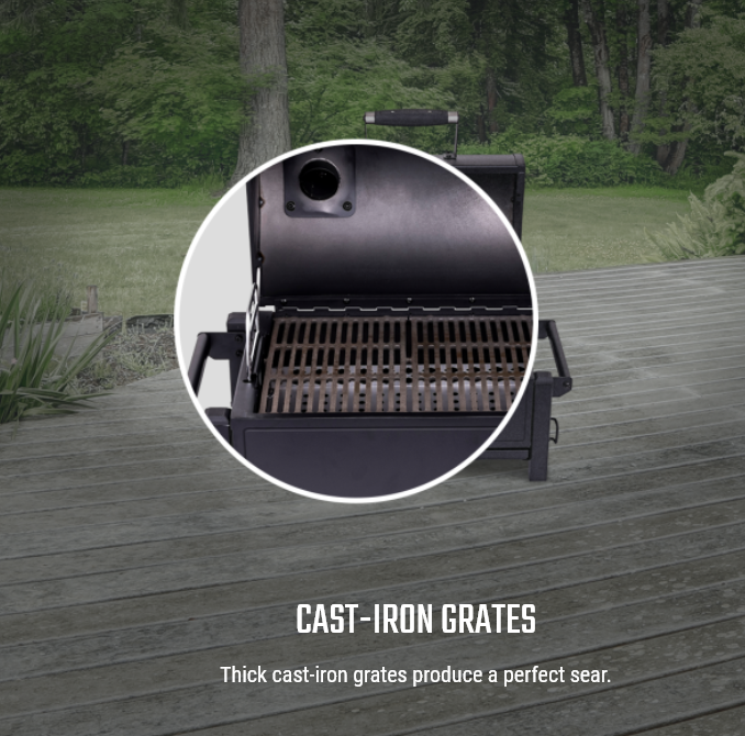 • GRATES: Thick cast-iron grates produce a perfect sear