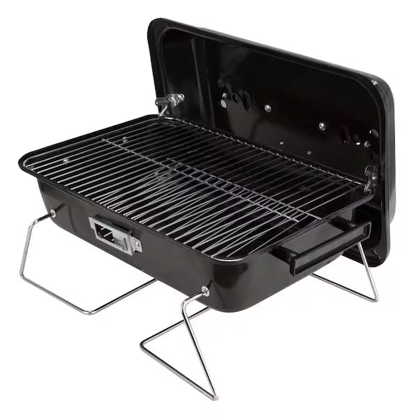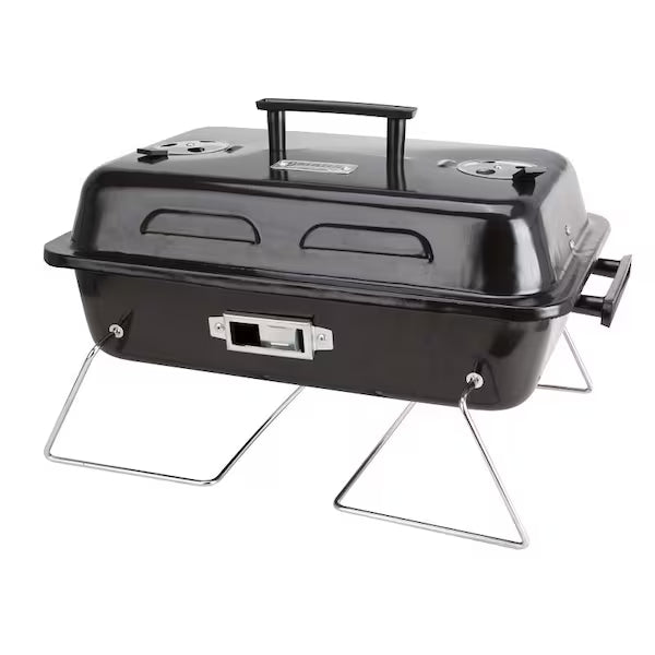 Omaha Portable Charcoal Grill, 168 sqin Primary Cooking Surface Area, 16 in Cooking Surface Width, 1012 in Cooking Surface Depth, 2 Grates, Steel Grate, Steel Body, Steel Frame, Black, 658 in H x 17 in W x 1134 in D Firebox Dimensions, 1112 in H x 1834 in W x 1134 in D