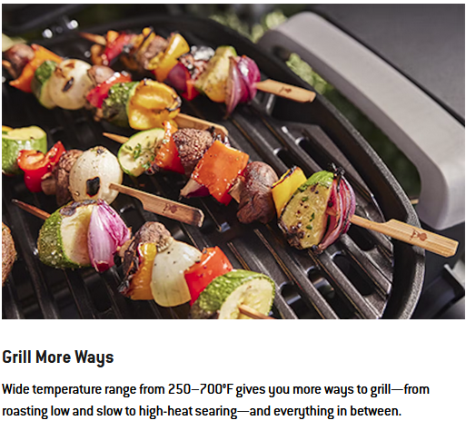 • Wide temperature range 250° - 700°F provides more ways to grill