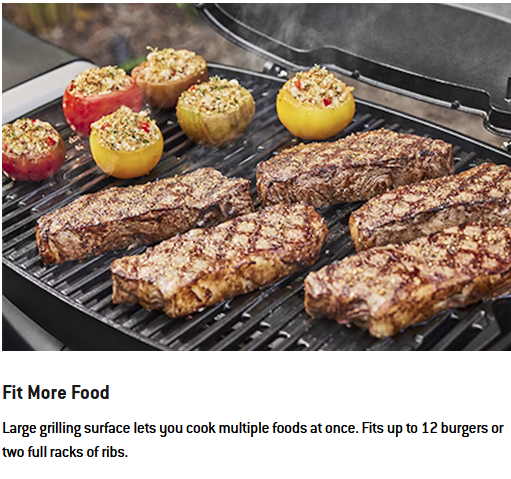 Large grilling surface lets you cook multiple foods at once. Fits up to 12 burgers or two full racks of ribs.