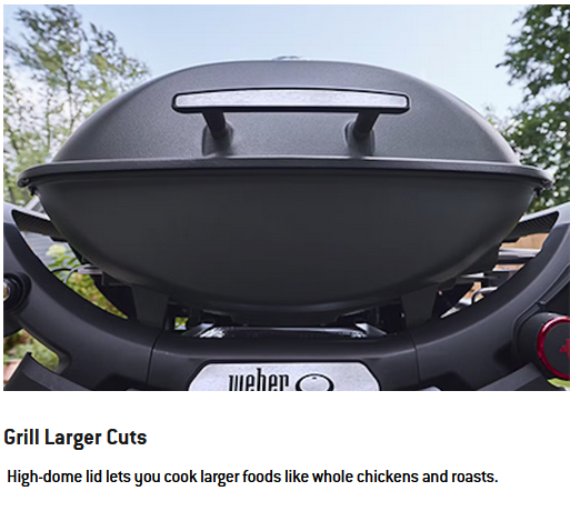 High-dome lid lets you cook larger foods like whole chickens and roasts.