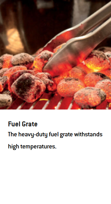 Fuel Grate. The heavy-duty fuel grate withstands high temperatures.