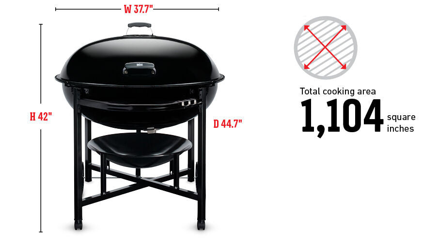 The enormous capacity of the Ranch® kettle charcoal grill sets the tone for a party that lasts until tomorrow. With more than 1,000 square inches of grilling space and a stainless steel hinged cooking grate for easily adding charcoal, you’re set up to grill for the masses.