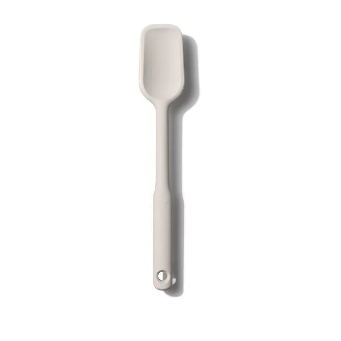 The OXO Good Grips Silicone Spoon Spatula combines everything you love from your go-to cooking spoon with the versatility you look for in your favorite spatula. Flexible, polished edges get every last drop from the sides of bowls and pots, so you get ingredients where they need to go with a lot less work. The long handle provides extra strength for tough tasks, and the soft, non-slip grip stays comfortable while you work. Dishwasher safe.