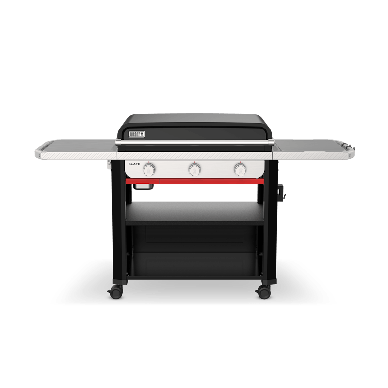Have more fun griddling on the game-changing, 30” rust-resistant Weber® Slate™ Griddle that’s ready to cook on right out of the box and stays ready, not rusty, use after use. Weber® Slate™ cooktops are made differently than other griddles. The carbon-steel gets transformed under extreme heat and pressure that case hardens and bonds the surface, reducing the ability for moisture to collect and rust to form. It is then pre-seasoned with food-safe oils that condition the metal for an extra boost of rust resistance and a natural, easy-release cooking surface right out of the box. No use of coatings means you can use metal tools to flip, press, and scrape without worry.