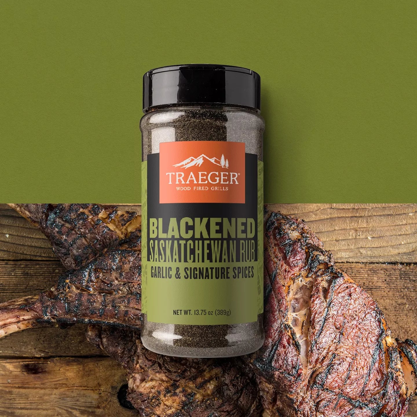 Featuring a signature blend of garlic and spices, Traeger Blackened Saskatchewan Rub is an incredibly versatile rub that goes great on anything. With flavor that enhances everything from blackened salmon to roasted veggies and even scrambled eggs, it’s no wonder that this rub has a cult following. New packaging, same great flavor.