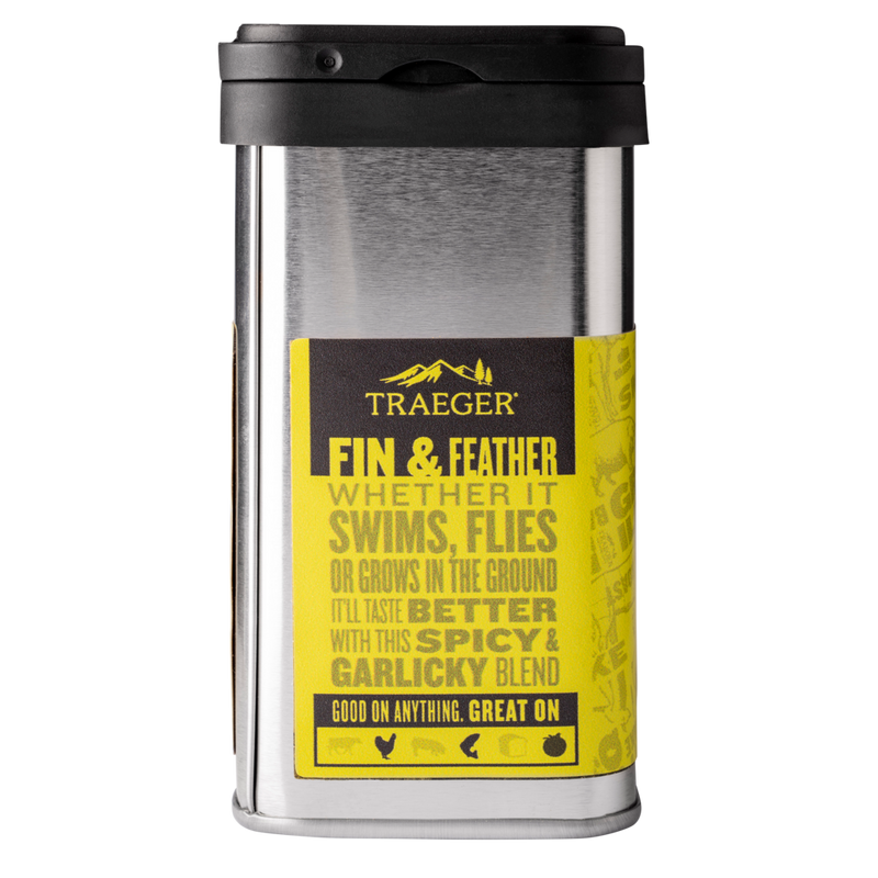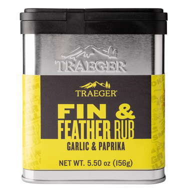 Amp up the flavor of everything from turkey to trout with Traeger Fin & Feather Rub. This savory rub features garlic, onion, and just a hint of spiciness to complement that flavor of fish and fowl without overpowering it.