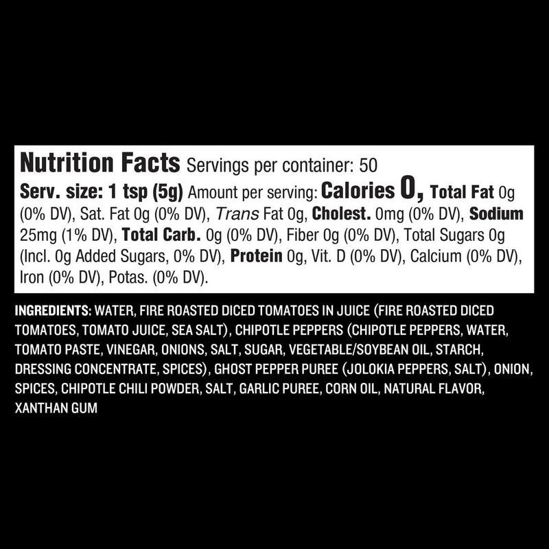 Featuring intensely spicy and smoky flavors, this dark-&-bold sauce delivers an otherworldly dose of heat to your tastebuds. Shake it on burgers, BBQ, burritos, or anything else that needs a splash of smoky spice.