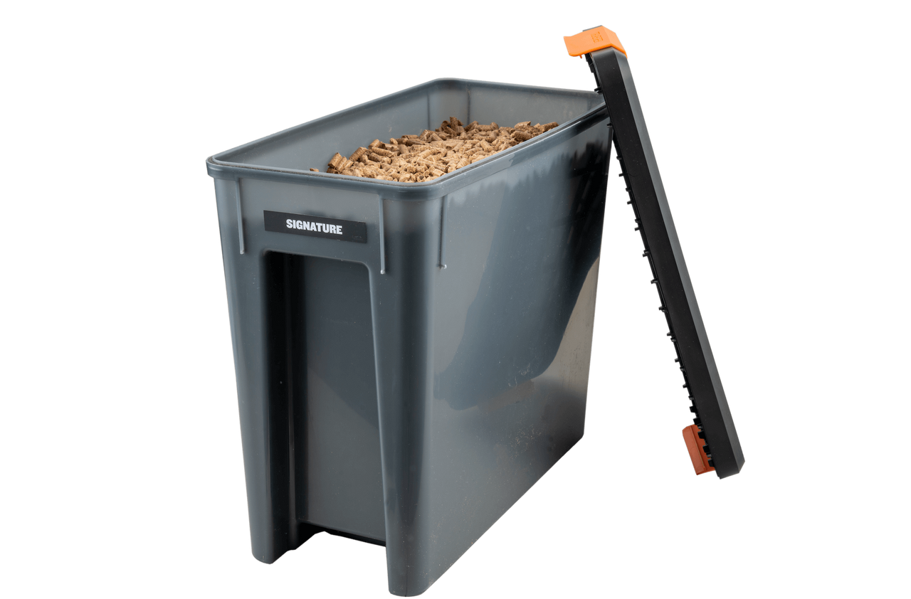 Keep your hardwood pellets fresh, dry, and organized with the StayDRY Pellet Bin. It features an airtight lid with locking closures that seals out moisture to ensure optimal burn and flavor from your pellets.