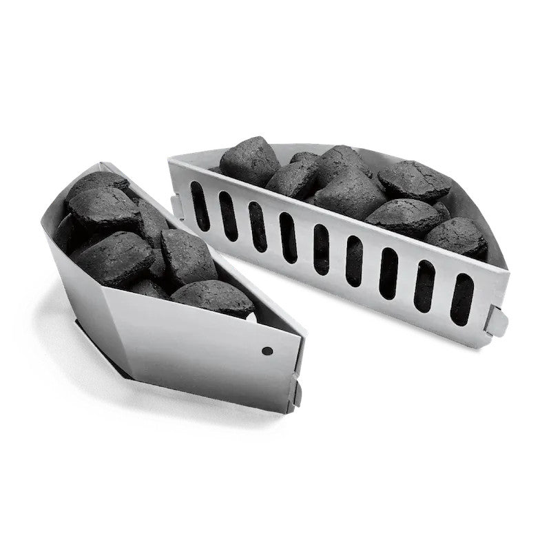 Focus on your food, spices, and company - the rest is easy. The Char-Baskets allow you to evenly and effortlessly arrange lit charcoal on your fuel grate to create the perfect indirect heat for grilling a whole chicken or ribs. Simply pour the lit charcoal from your chimney starter to the Char-Baskets, and grill on.