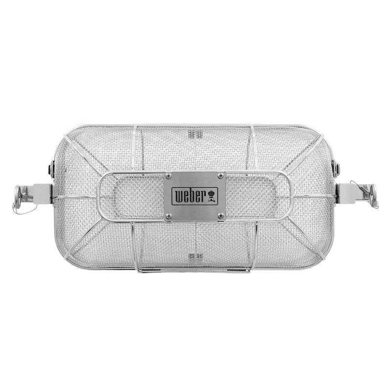 Bring your kitchen outside, and create food never thought possible in your grill, with the WEBER CRAFTED Outdoor Kitchen Collection. Simply attach the WEBER CRAFTED Rotisserie Crisping Basket onto the rotisserie spit in your grill to make deliciously crispy French fries, veggies, or even popcorn. Grill rotisserie unit required for use.