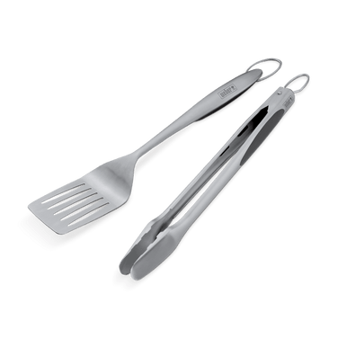 A spatula and tongs go together like salt and pepper. Whether flipping burgers, turning hotdogs, or transferring beer can chicken from tray to cooking grates, the spatula and hands-free locking tongs in the Deluxe Tool Set are two of your everyday grilling essentials.