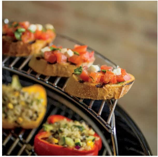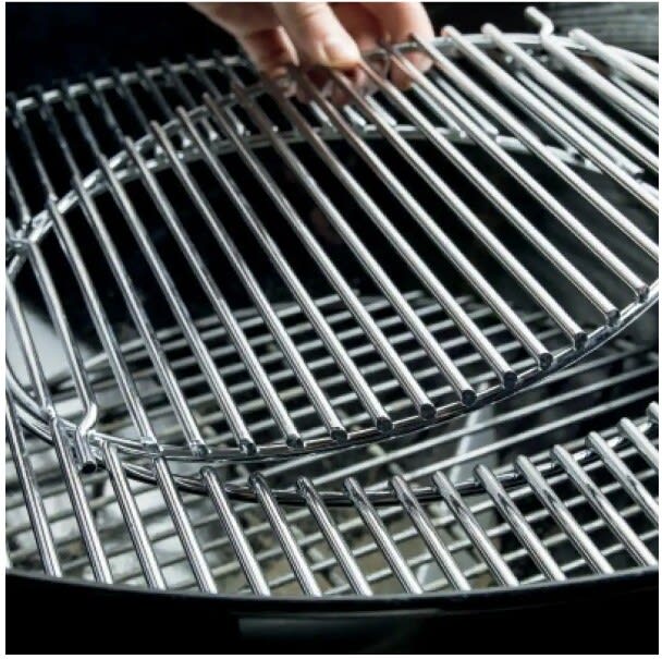 - Cooking grate is compatible with GBS inserts and is hinged for easily adding charcoal while grilling