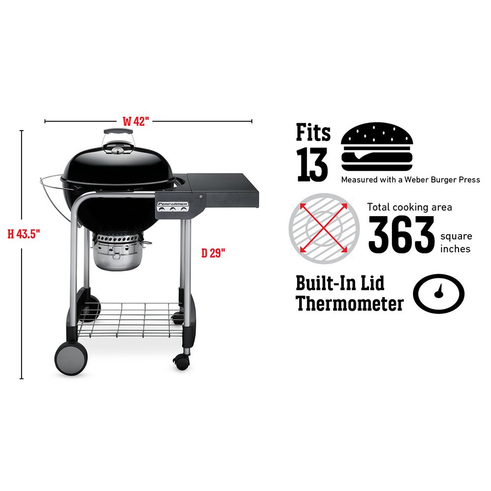 The powerful performance and convenient features of the Performer® charcoal grill is your excuse to ignite the coals every day. Prep food on the work table, hang grilling accessories from the tool hooks, and then clean up with ease—but only after you’ve taken every last bite of your perfectly grilled meal.