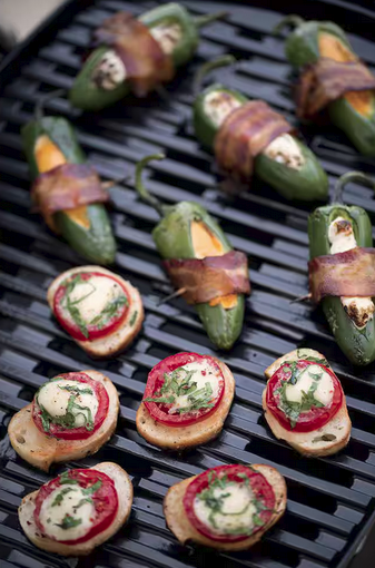 - Porcelain-enameled cast-iron cooking grates; infinite heat control settings; cast aluminum lid and body; glass-reinforced nylon frame
