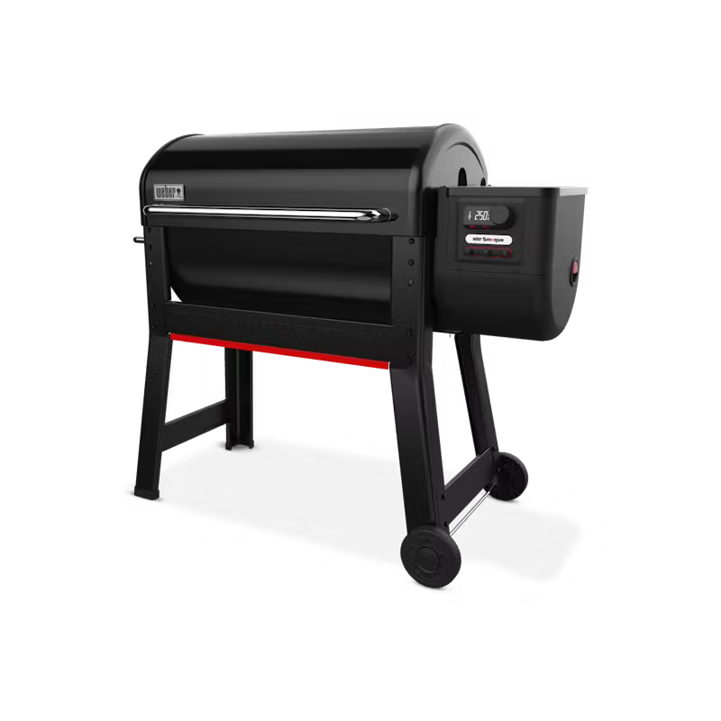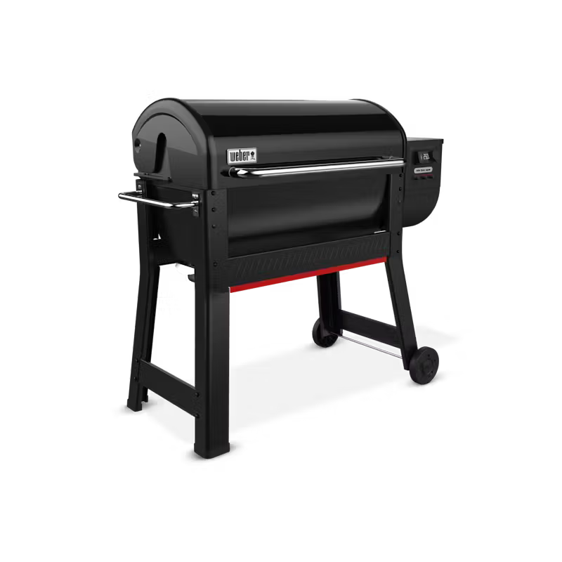 Get in on the fun and flavor of smoking with the Weber Smoque™ XL Pellet Smoker. Let smoky flavor flow with a SmokeBoost™ setting that maintains ideal temperatures for optimal smoke absorption and a SmoqueVent™ system that circulates smoke around food for deep flavors and delicious browning. Go from low-and-slow to baking and roasting with a range of cooking temperatures for smoked ribs, brisket, and jerky to roasted chicken, baked dishes, and sides. Cook multiple foods at the same time and feed a crowd with 918 square inches of space. Get smoking sooner with a Rapid React™ PID that heats up the grill in 15 minutes or less† and recovers the temperature quickly after the lid is opened. Cook confidently with an intuitive, easy-to-use digital controller that lets you see grill and food temperature and connects to the Weber Connect® app on your smartphone to control the smoker from anywhere, monitor live cooking progress, and get recipes, step-by-step instructions, readiness alerts, and more for perfect results every time.